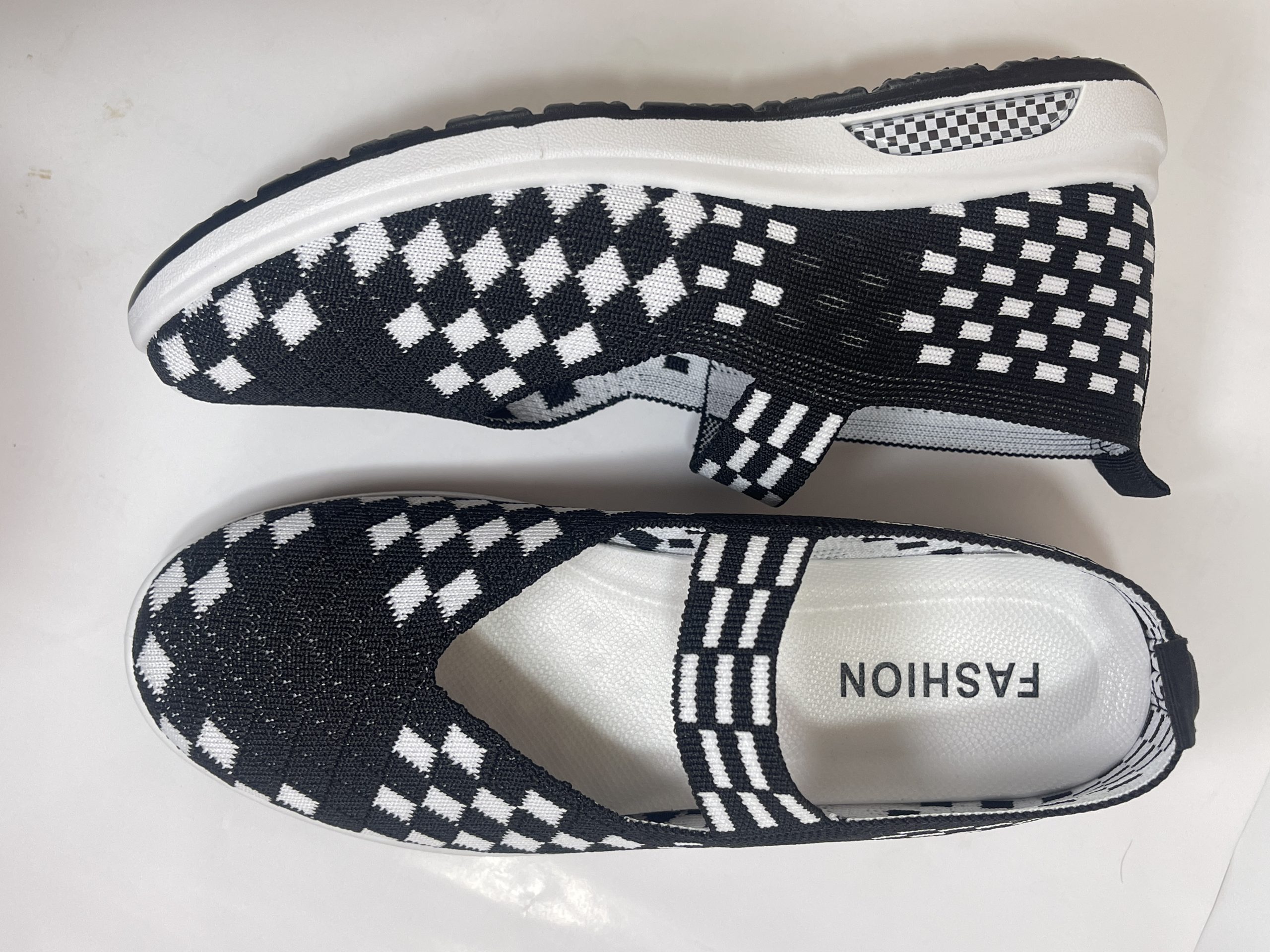 Comfortable and stylish women’s slip-on knit sneakers with a breathable woven design. Lightweight, flexible sole perfect for walking, travel, or everyday casual wear.